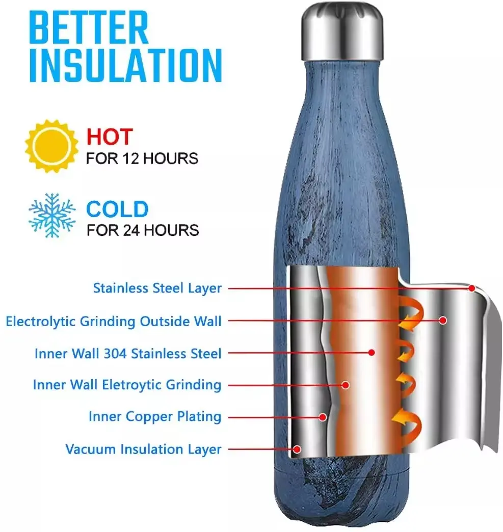 A: Our stainless steel cola bottles are made from high-quality 304 stainless steel, which is food-grade, rust-resistant, and BPA-free.