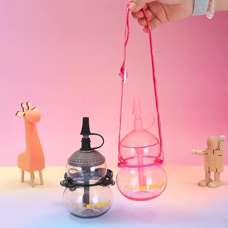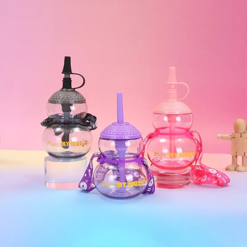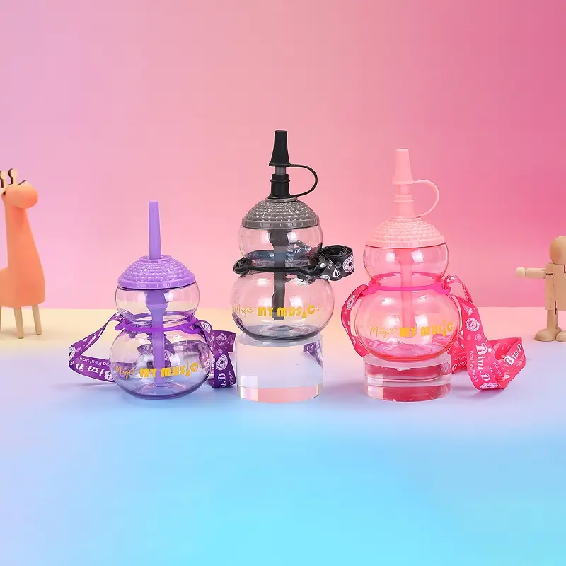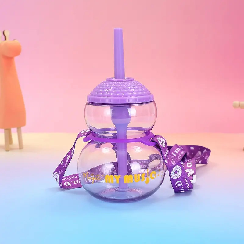 Custom Cute Cartoon Gourd-Shaped Large Cap Kids Straw Cup with Strap for Outdoor